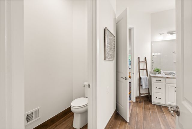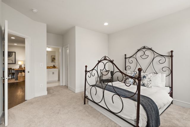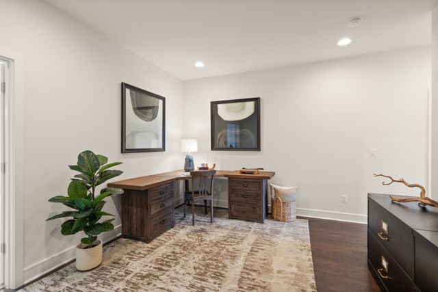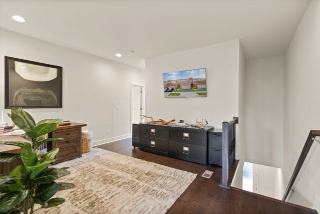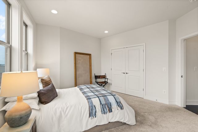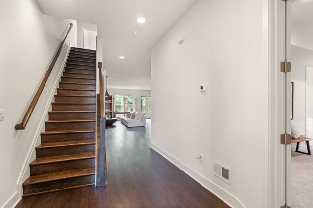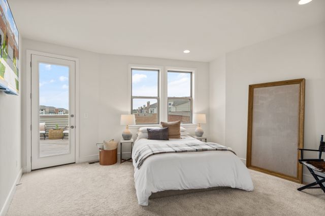Additional highlights include dual shower heads with separate diverters in the second-level guest bath, marble thresholds throughout the home, and recessed lighting in every room. Step onto the panoramic rooftop terrace and immerse yourself in the breathtaking scenery that stretches before you. With a backdrop of a wooded common area, the backyard offers you peace and gives you a clean slate to make it your own space.
