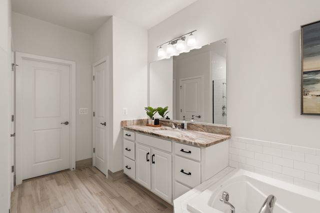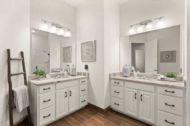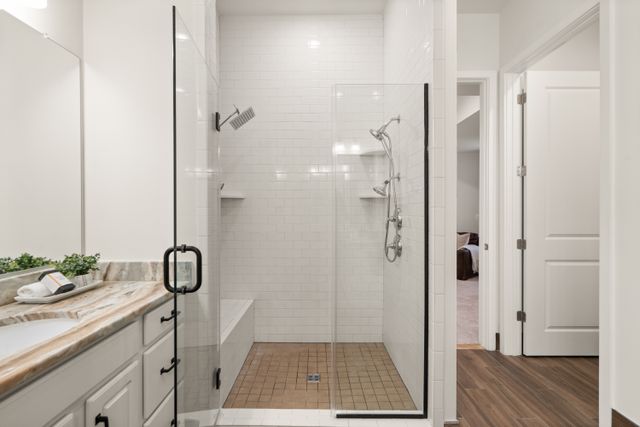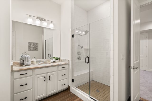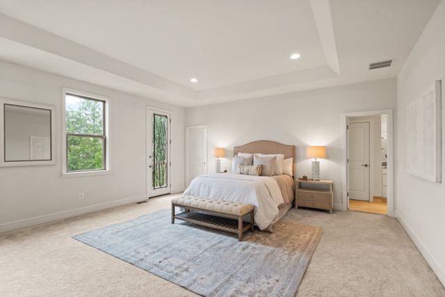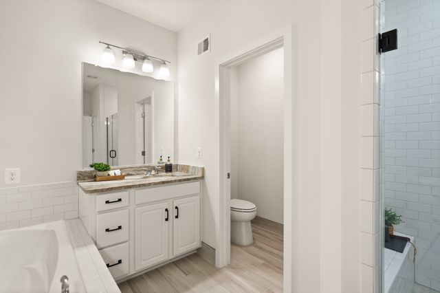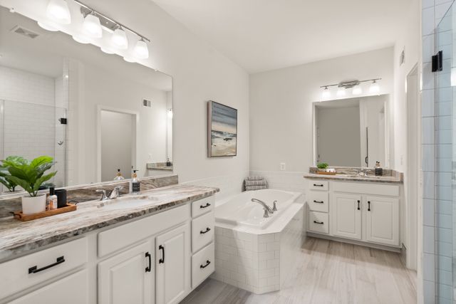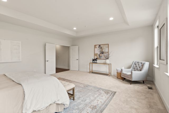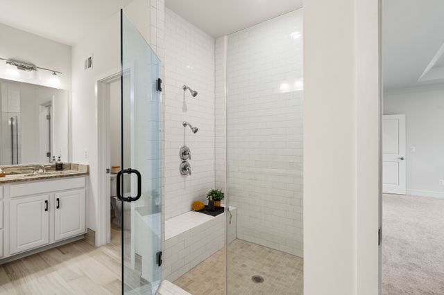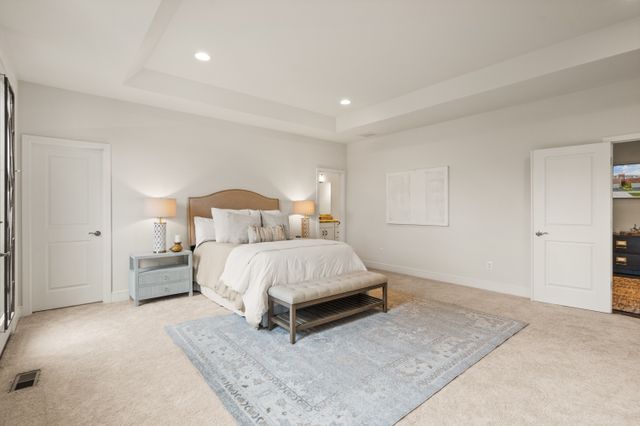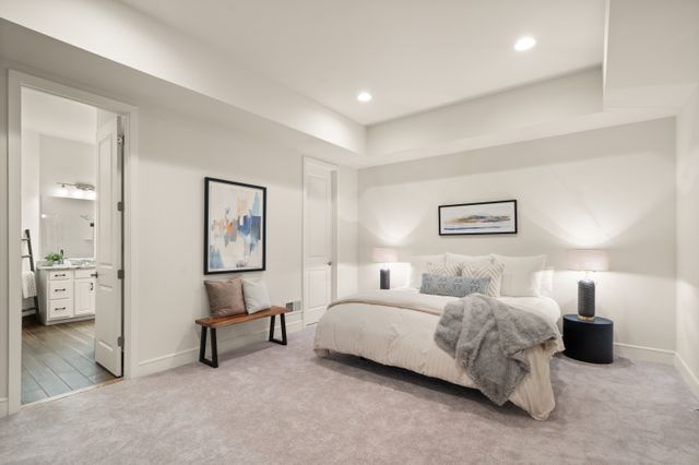 Discover the epitome of comfort with not one, but two spacious primary suites! The first awaits on the entry level, offering convenience and privacy, while the second beckons on the top floor. Both provide en suites with large frameless showers and quad shower heads that have separate diverters for your preference. To add to your spa-like experience, the second floor en suite is complete with a luxurious 6ft soaking tub that allows you to unwind after a long day. Additional highlights of these primary's are tray ceilings and ample walk in closet space.