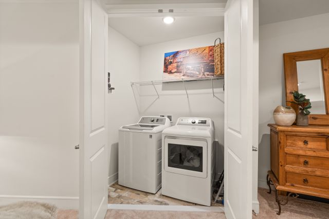Practicality meets convenience with main level and second-level laundry room, featuring 4x12 Cantina Bianco ceramic tile floors. Cozy up in the family room with a beautiful gas fireplace in the colder months and enjoy the opportunity to add a gas grill out back with a rough-in gas grill line for those warmer days. The smart garage is the modern homeowners dream! Control your garage from anywhere with your phone, charge your scooter, bike etc with a 120V - 20Amp interior dedicated outlet, and a 220V - 50Amp GFCI outlet for electric car charging.