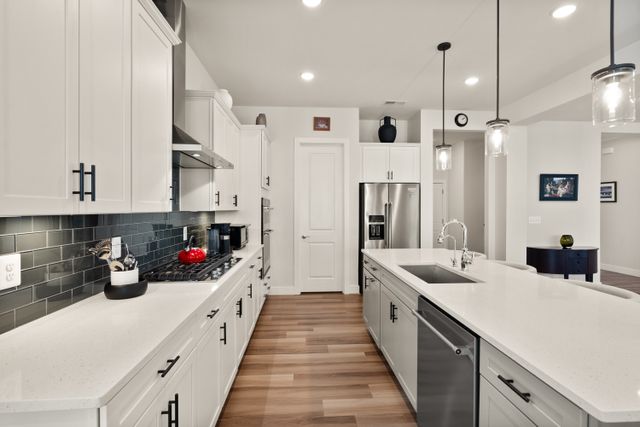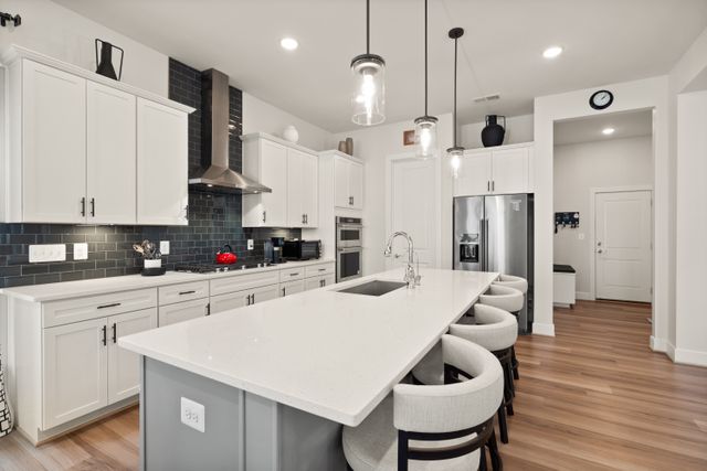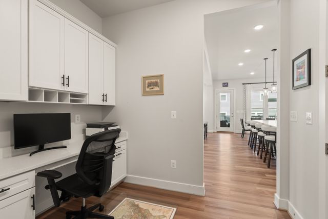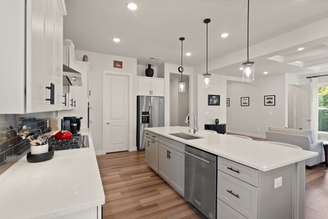 The luxuries of a modern home, completed at the end of 2022 by Pulte Homes, in the heart of Fairfax across from George Mason University and just outside Fairfax city limits near Old Town Fairfax. Welcome to this Wincrest model in the contemporary Mason Park community. This spacious single-family home has 5 bedrooms, 4.5 baths, a screened-in porch, and a fully fenced rear yard. This home is situated on a non-through street with views of community green space, anchored around a large magnolia tree. The home, with great curb appeal boasts a cozy covered front porch ‘for two’. And, as you step through the front door, a spacious hallway leads you to a modern and open floor plan with high ceilings and natural light. The living room provides warmth and comfort with a designer fireplace and coffered ceiling. The creative design is such that both the dining area and the gourmet kitchen are naturally defined, providing for a cozy and comfortable everyday living as well as ample room for entertaining family and friends! The kitchen has luxurious yet functional features with quartz countertops, stainless steel appliances, and a walk-in pantry. From the kitchen, you have easy access to a spacious 2-car garage through a built-in pocket office, perfect for an in-home workspace. The garage has additional space in the back and high ceilings for more storage capacity. From the dining room is a screened in porch that provides access to the green, fully fenced backyard. The top floor features a peaceful primary suite with 2 walk-in closets and a bathroom containing 2 separate vanities with storage, a large dual-head shower, and a soaking tub. This level is also home to a bedroom with an ensuite and walk-in closet, two additional bedrooms both with walk-in closets, a spacious hall bathroom with a double vanity, and a dedicated laundry room. The fully finished basement level is filled with amenities, including a large rec room, pre-wired for entertainment and surround sound; a wet bar, a guest room with a full bathroom, upgraded flooring, and walk-up access to the backyard. This partially buried basement is filled with tremendous natural light through four café windows and is a great flex space! Upgraded flooring, window treatments, 10' ceilings, and a whole-house water filtration system are just a few additional notable features to be found within the home. With great storage space, luxuriously appointed designs, over $75K of owner customizations, plus modern-day conveniences, this one is hard to beat. A fantastic Fairfax County location: in the Woodson HS district, across the street from George Mason University, and only minutes to all the action and amenities that the City of Fairfax and Town of Vienna offer. Don't miss the opportunity to make this house your home!