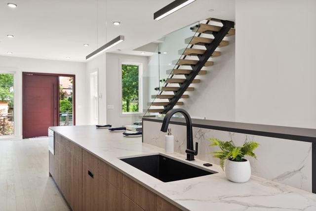 Nestled in the heart of Chevy Chase, DC, lies the exquisite property at 6116 30th St NW, a beacon of luxury living and modern elegance, boasting a prime location near Rock Creek Park. Upon arrival, step inside, and you'll discover a sanctuary of luxury finishes and thoughtful features designed for the discerning homeowner. Every element exudes sophistication and charm from the striking modern chandeliers to the rich, red oak hardwood floors. Sunlight floods the interior, illuminating the space and accentuating its beauty. The first floor showcases an impressive array of premium touches, including an elevator for seamless access to each level. The kitchen is a culinary masterpiece with a convenient coffee station and high-quality finishes such as German-imported Leicht cabinets, Wolf & SubZero appliances, and Dekton countertops. High ceilings throughout the home create an atmosphere of openness and grandeur, while lofted ceilings in the rear family room add a touch of architectural intrigue. Ascend to the second floor, where three spacious bedrooms await. Two bedrooms share a large full bath, while a third bedroom offers its own en-suite, providing comfort and privacy for residents and guests alike. Venture to the third floor, and you'll discover the epitome of luxury: the primary bedroom suite. Spanning the entire floor, this sanctuary features a bright lounge area with a wet bar, for private times of relaxation, as well as indulgence. A half bath allows for privacy. Lose yourself in the freestanding soaking tub, surrounded by imported Porcelanosa tiles; peruse your wardrobe in one of two expansive walk-in closets. As night falls, retreat to the perfectly appointed bedroom, gleaming with soft lighting and unparalleled comfort. For those seeking panoramic views of NW DC, a private rooftop deck awaits, offering a serene escape. Descend to the basement, where warm memories are made in the inviting family room, or transform the den into a home office or gym. Two additional bedrooms, one en-suite, provide ample space for guests or quiet retreats, while a full bath ensures comfort and convenience. A two-car garage is equipped with a charging station for electric vehicles. Above the garage, an accessory dwelling unit (ADU) brings a complete with a full kitchen, bath, washer and dryer, and a spacious bedroom. Ideal for guests or an Au Pair, this separate living space offers privacy and independence within the framework of this extraordinary property. 6116 30th St NW is luxury living in the heart of Chevy Chase, DC. With its impeccable design and prime location, this residence offers a lifestyle of unparalleled comfort and sophistication.