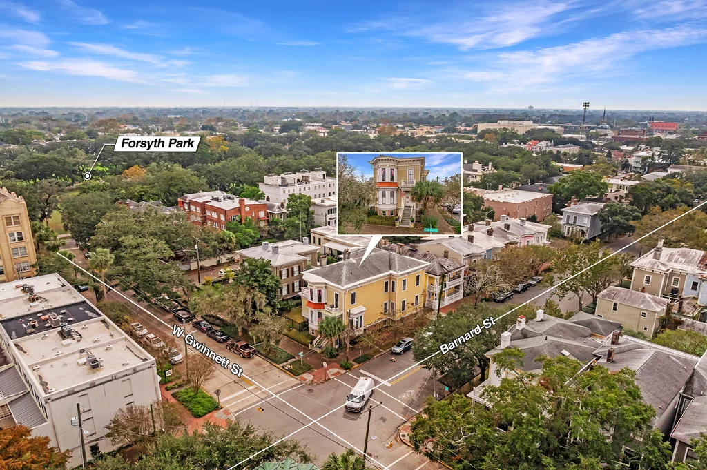 c 1900 Victorian Beauty. An exquisite & unique multi-family brimming w/ great income & charm. Originally crafted as a single family mansion, transformation back into its original splendor & glory is possible. Approx. 8,800 square feet, this unique home exudes historic details with plenty of space to accommodate your vision. Comprising 10 bed/ 9 ba across 8 individual apartments, this property is a true gem. Nestled on a desirable and sunlit corner lot, w/an ideal balance of northern & southern exposures and just steps to Forsyth Park. Architectural features: built-ins, crown & decorative moldings, exposed brick, lofty ceilings, heart of pine floors, & decorative fireplaces infusing coziness and warmth. Abundant natural light streams through floor to ceiling windows. Fully furnished. Enjoy a rare upper porch & fenced yard. This home carries historic significance, linked to Louis Gourdin Young and Mary Young, the granddaughter of the 10th President.