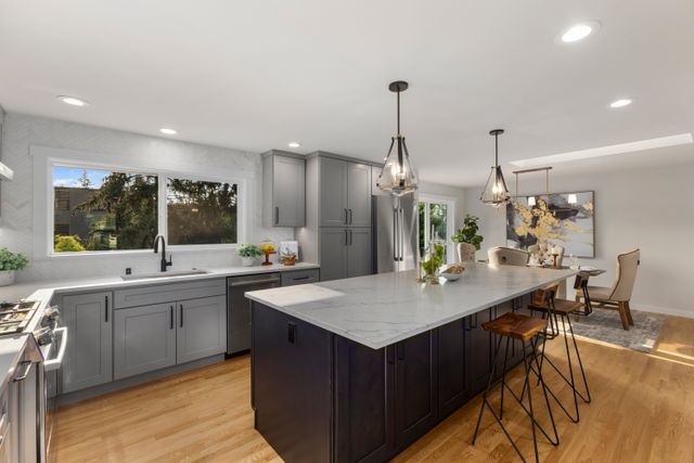 This charming Bellevue home at 919 144th Pl SE, WA 98007, offers a perfect blend of comfort and convenience. Nestled in a quiet neighborhood, this well-maintained residence features 4 bedrooms and 3 bathrooms across 1,620 square feet of living space. The open floor plan seamlessly connects the living room, dining area, and kitchen, creating an inviting atmosphere for gatherings. Enjoy the large windows that flood the space with natural light, as well as the cozy fireplace for those cooler evenings. The property includes a spacious backyard with mature landscaping, ideal for outdoor activities and relaxation. With easy access to local schools, shopping, and major highways, this home is a must-see for anyone seeking a peaceful yet accessible location in Bellevue.