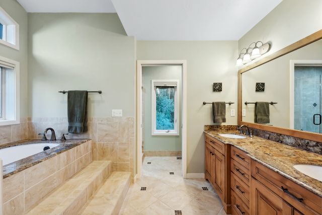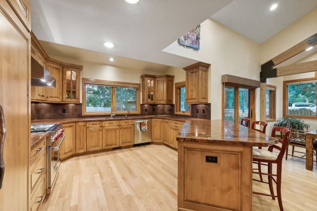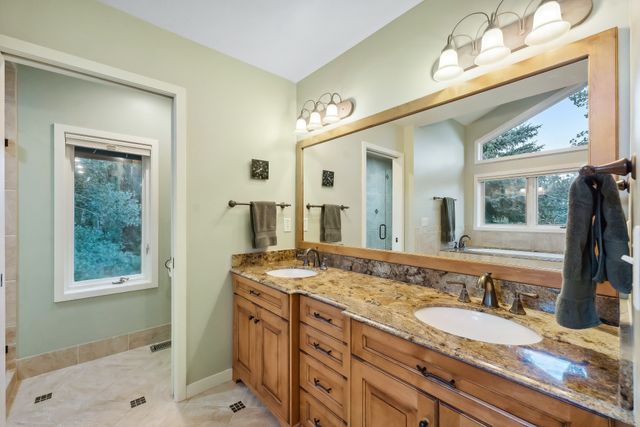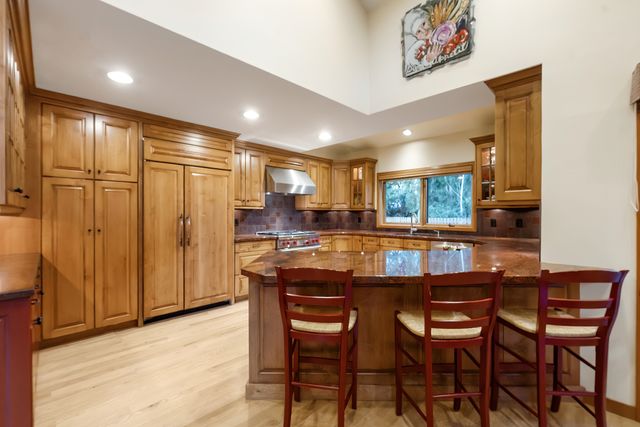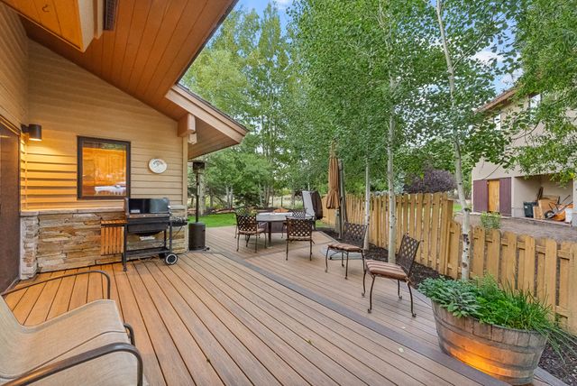 This special Park Meadows home features an ideal floor plan that flows flawlessly. It sits on one of the neighborhood's best lots adjacent to open space, on a cul de sac and surrounded by mature trees and with meticulous landscaping. The fenced back yard features an expansive deck area with composite decking and a lovely hot tub. The great room is stunning and spacious with two story picture windows and a sizeable living space featuring a floor-to-ceiling fireplace. The gourmet kitchen offers top-of-the-line stainless appliances, including a duel fuel range offering a gas cooktop and electric oven and a built-in microwave that also serves as a convection oven. The space is ideal for entertaining or enjoying a small meal at home. There's also an open dining area that can accommodate any size dining group. There are two large, private bedrooms each with their own bathrooms and sizeable closets on the main floor. Upstairs is the exclusive master suite featuring a home office, large walk-in closet, soaker tub and shower and dual sink area. The outdoor decks offer a hot tub and natural gas stubbed to the deck. The home has rooftop solar. This home is a Park Meadows gem in the exclusive McCleod Creek area.