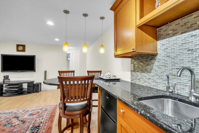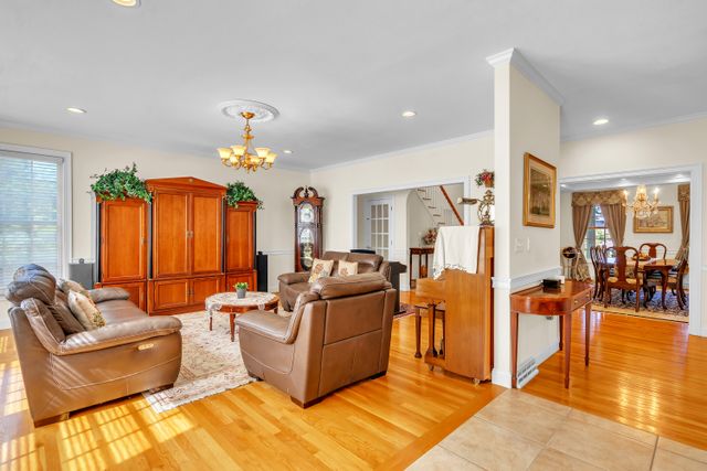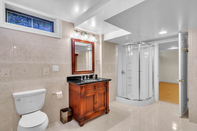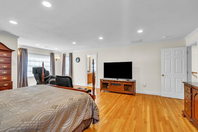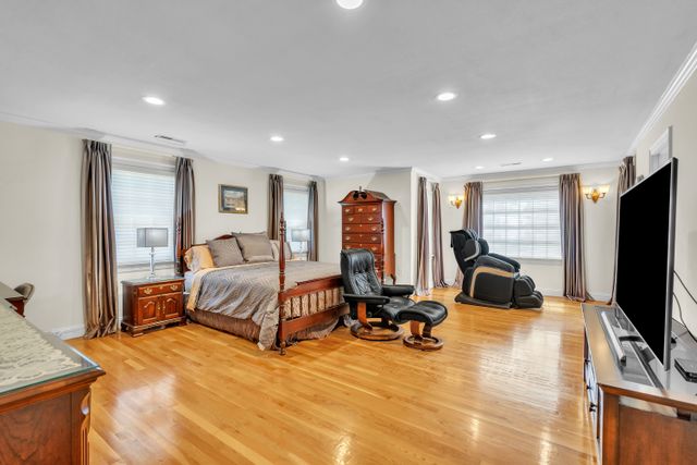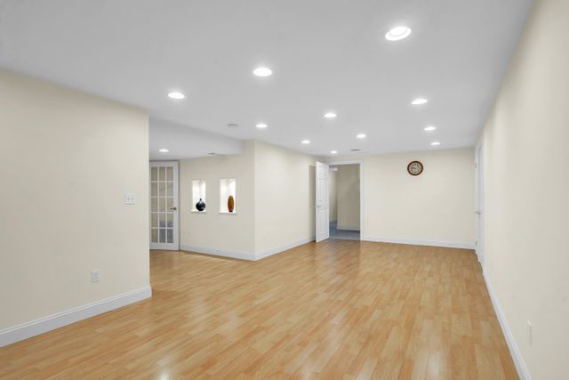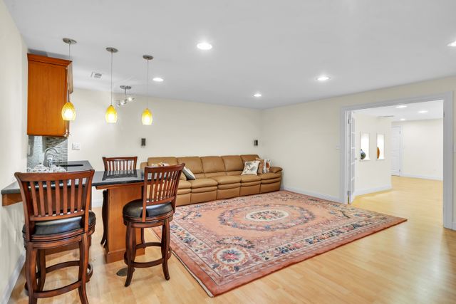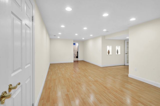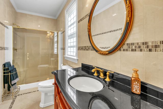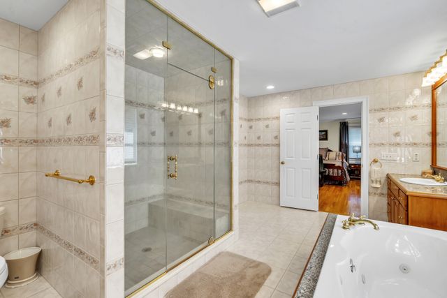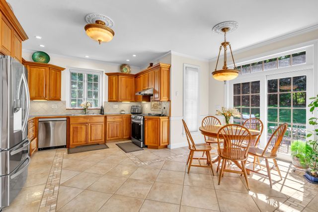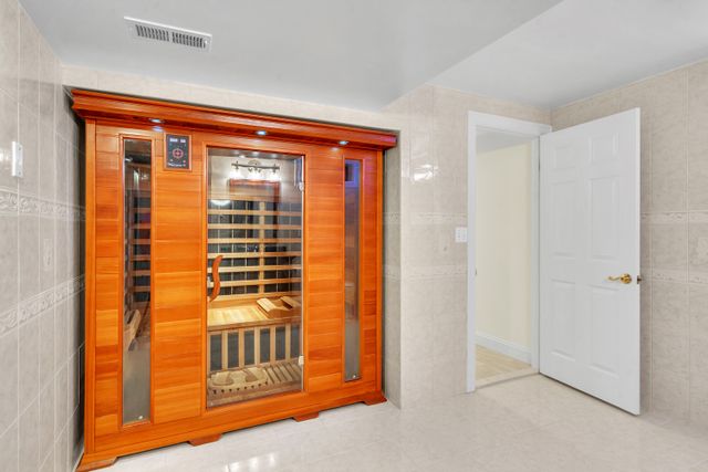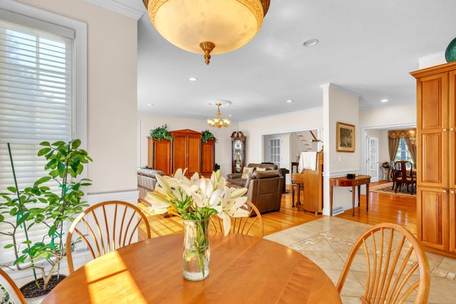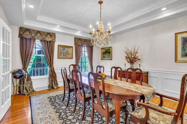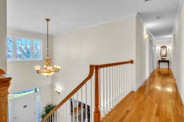 Exquisite and impeccably maintained East Woods home on a cul-de-sac, this property exudes elegance & comfort. The family room with gas fireplace and beautiful trey celling is as cozy as can be. The kitchen (with breakfast nook) is open to the family room & has a slider overlooking the backyard patio. There is also a formal dining room with wainscoting, crown molding and trey ceiling. A bedroom, full and half bath complete the first floor. All bathrooms are tile from floor to ceiling and the main living areas are hardwood and tile throughout. Upstairs is an office, and 4 bedrooms (one with laundry area). The primary suite is enormous, with full bath with jacuzzi tub, oversized shower, double vanity and walk-in closet. Also featured is one of the most high-quality & spacious finished basements you'll see, with full bathroom containing a sauna, built-in showcase shelving, a wet bar with bar-seating, tons of space for a game room (or two!) and ample storage with tons of closet space.