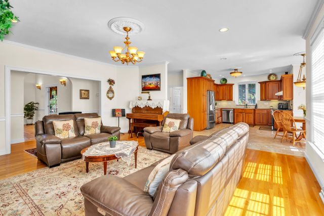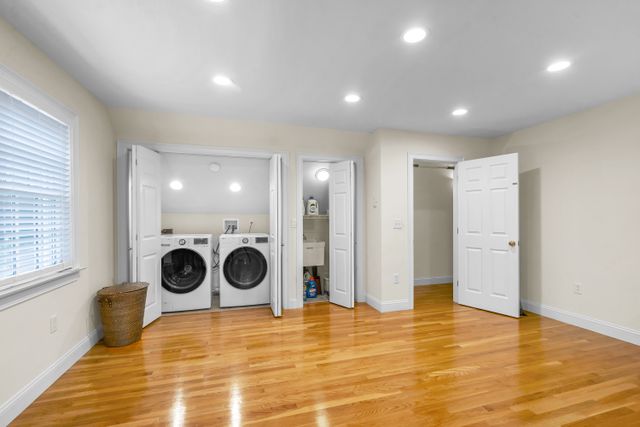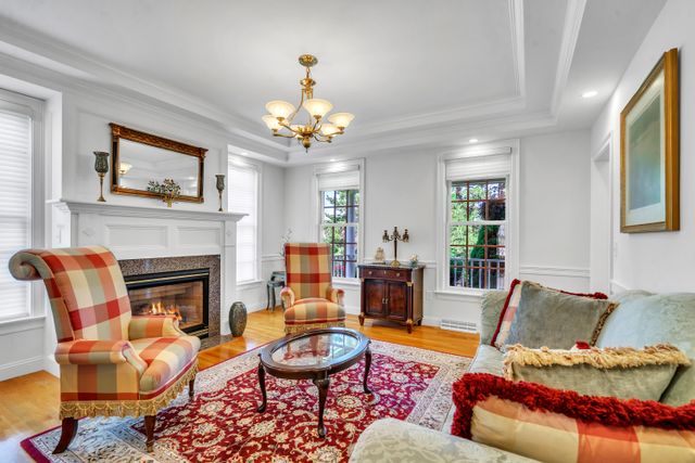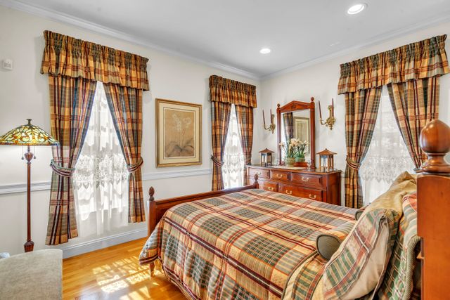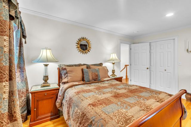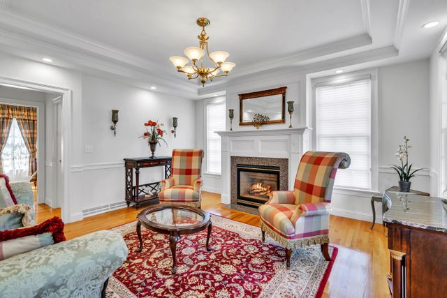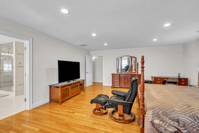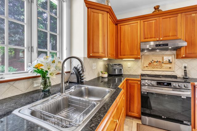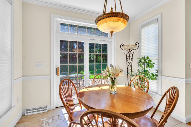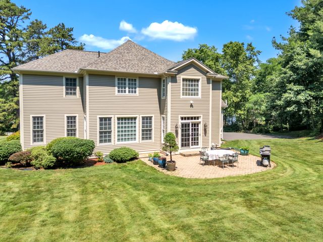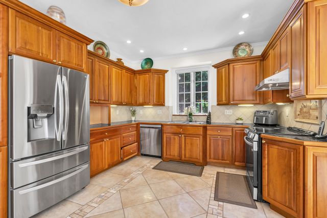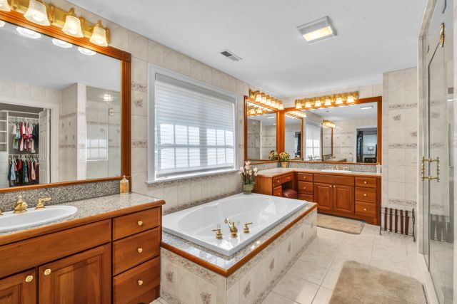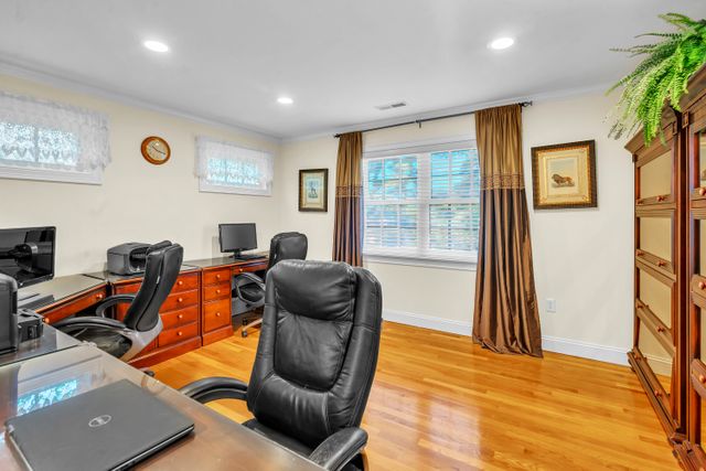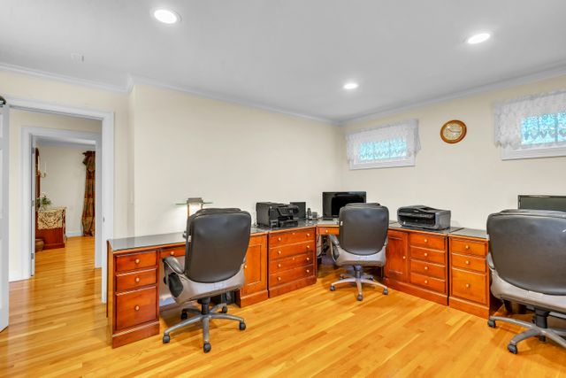 Exquisite and impeccably maintained East Woods home on a cul-de-sac, this property exudes elegance & comfort. The family room with gas fireplace and beautiful trey celling is as cozy as can be. The kitchen (with breakfast nook) is open to the family room & has a slider overlooking the backyard patio. There is also a formal dining room with wainscoting, crown molding and trey ceiling. A bedroom, full and half bath complete the first floor. All bathrooms are tile from floor to ceiling and the main living areas are hardwood and tile throughout. Upstairs is an office, and 4 bedrooms (one with laundry area). The primary suite is enormous, with full bath with jacuzzi tub, oversized shower, double vanity and walk-in closet. Also featured is one of the most high-quality & spacious finished basements you'll see, with full bathroom containing a sauna, built-in showcase shelving, a wet bar with bar-seating, tons of space for a game room (or two!) and ample storage with tons of closet space.